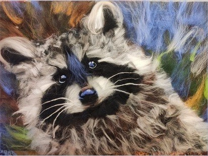 Картины сделаны из различных материалов: шерсть, акрил, гуашь, карандаш, пастель.